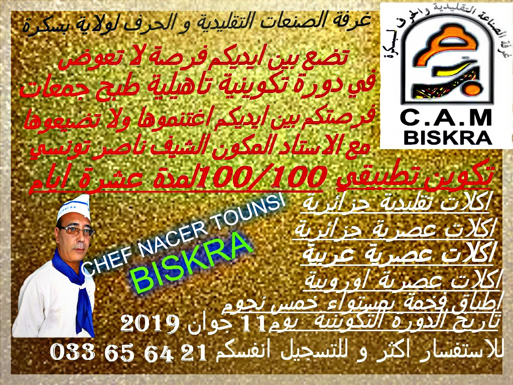 بغرفة الصنعات التقليدية و الحرف لولاية بسكرة . التكوين تطبيقي مئة بالمئة 100/100